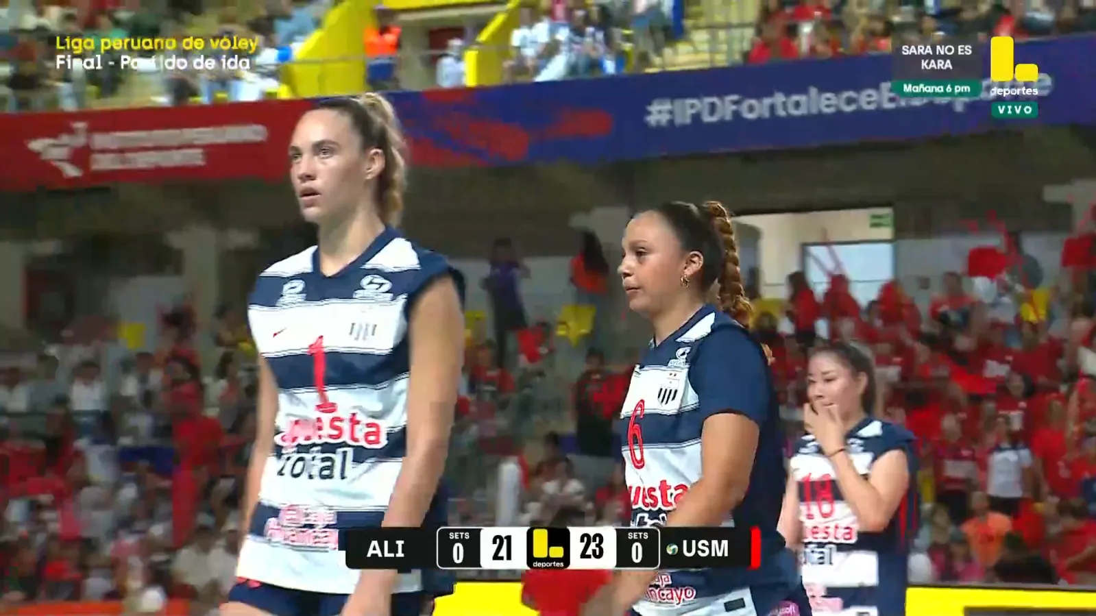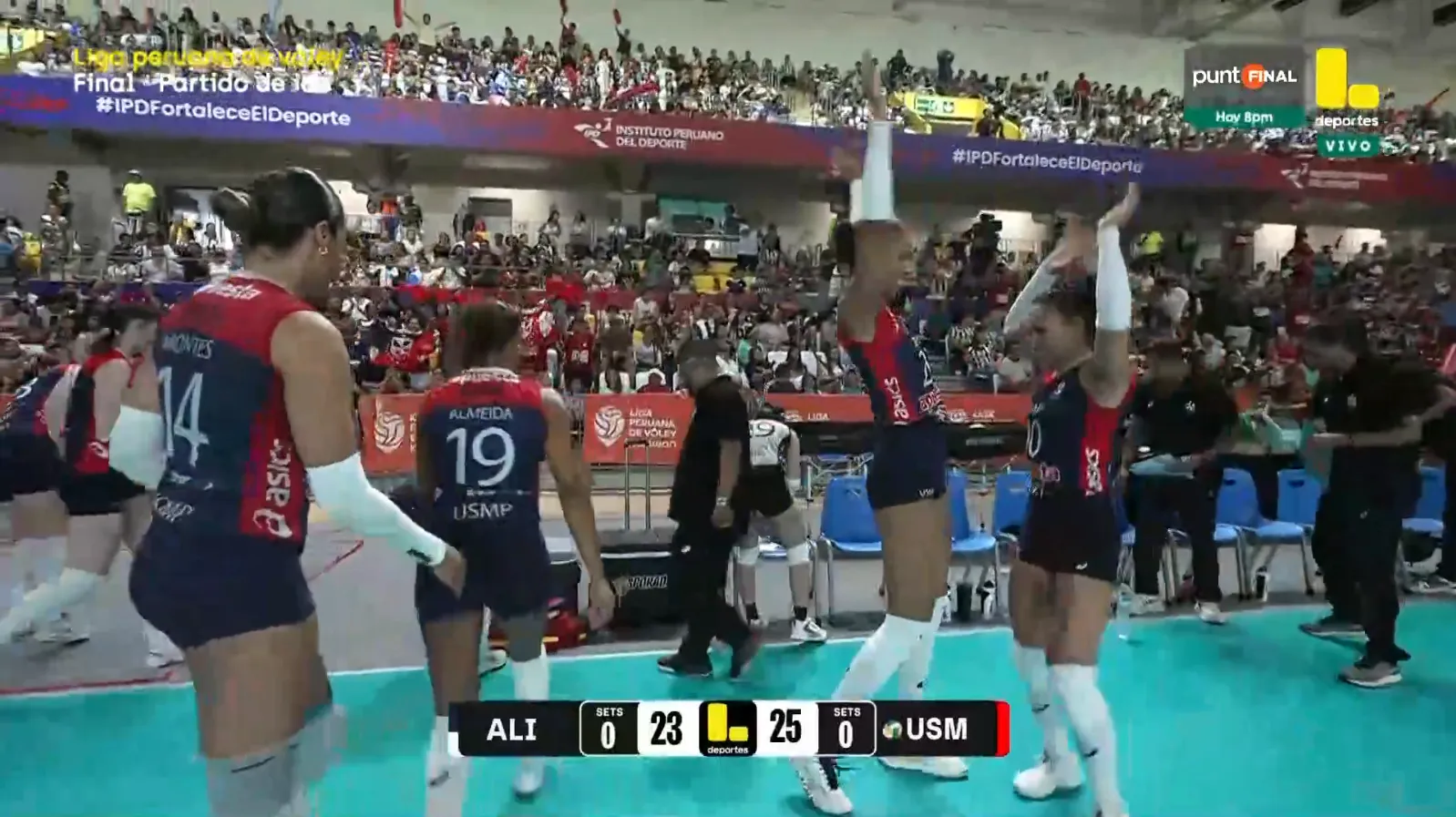 Por la final de la Liga Peruana de Vóley, el cuadro de Alianza Lima se enfrenta a la San Martín. Este encuentro se disputará el próximo domingo 19 de abril desde las 17:00 horas de Perú en el Coliseo de Villa El Salvador. Este será el primer juego en busca de ganar la serie de 3 juegos para salir campeón nacional.