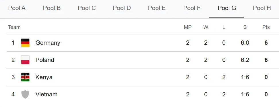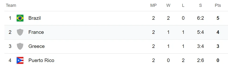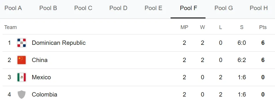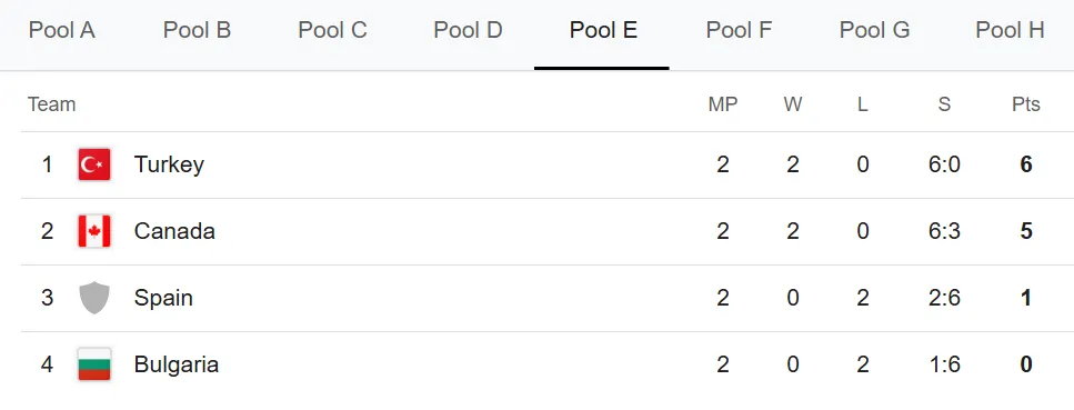 Tabla de posiciones del Mundial de Vóley 2025