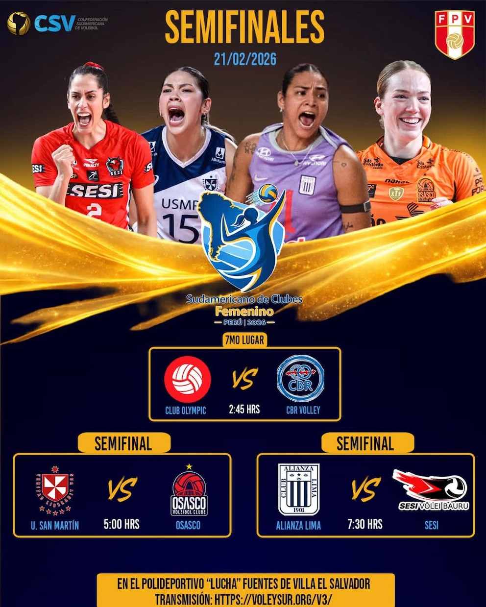 - Alianza Lima vs. Sesi (19:30)