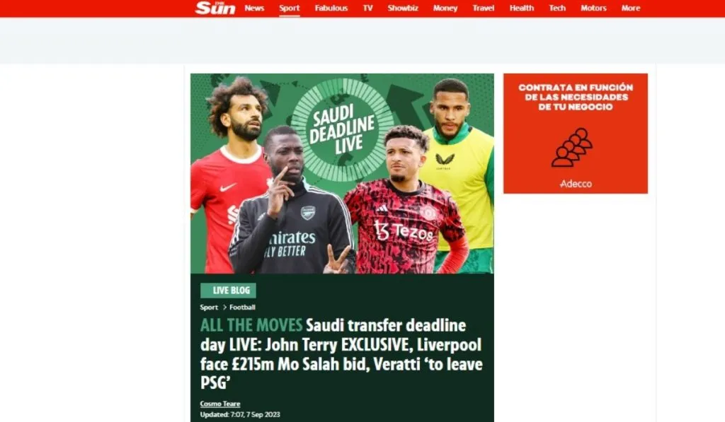 Últimas 24 horas del mercado de fichajes de Arabia Saudita. Oriente Medio cierra la ventana de transferencias más importante de su historia moderna con un nombre en el aire: Mohamed Salah. Así se levanta la prensa inglesa hacia la posible marcha del delantero de Jürgen Klopp. Anfield Road cruza los dedos.