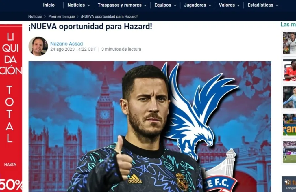 Solo el tiempo dirá que ocurre, pero el nombre de Eden Hazard parece encontrarse más vivo que nunca por una Premier League donde ante la inminente fuga de talentos rumbo a Turquía o Arabia Saudita, incluso nombres en horas bajas como el belga suenan con fuerza. Ver al ‘7’ en Crystal Palace, uno de los nombres del verano.