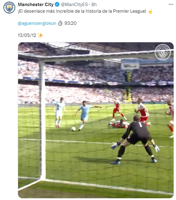 Ese partido fue el 13 de mayo del 2012, por eso este lunes el Manchester City hizo mención en sus cuentas de redes sociales, generando, como era de esperarse, miles de likes y comentarios que le declararon su cariño al ex jugador de Independiente y de la Selección Argentina.