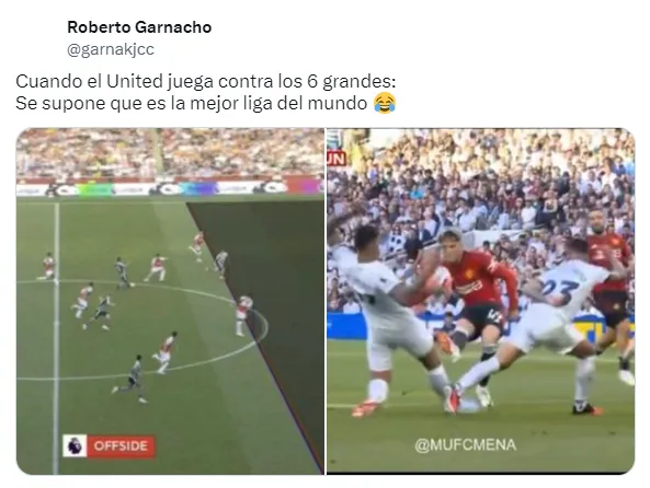 ”Cuando el United juega contra los 6 grandes. Se supone que es la mejor liga del mundo”, escribió el consanguíneo de Alejandro Garnacho para apuntar tanto la posición adelantada vs. Arsenal como la mano en el área de Cristian Romero, defensor del Tottenham Hotspur, en el partido que se disputó por la primera jornada en el que el Manchester United cayó 2 a 0.