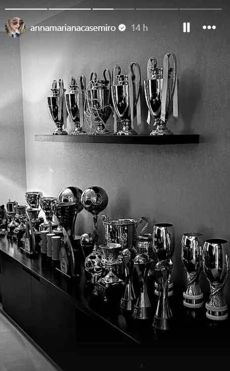 La mujer simplemente eligió publicar una imagen con la vitrina personal de su marido, repleta de todos los trofeos que consiguió a lo largo de su laureada carrera.