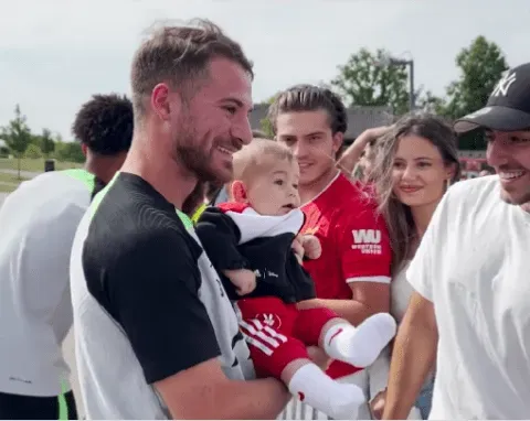 Además, en las últimas horas, se hizo viral la imagen de un hincha del club que le dio a su hijo recién nacido para que lo alce y pueda sacarse fotos. Esto generó la sonrisa del jugador y de todos los que estaban presentes.