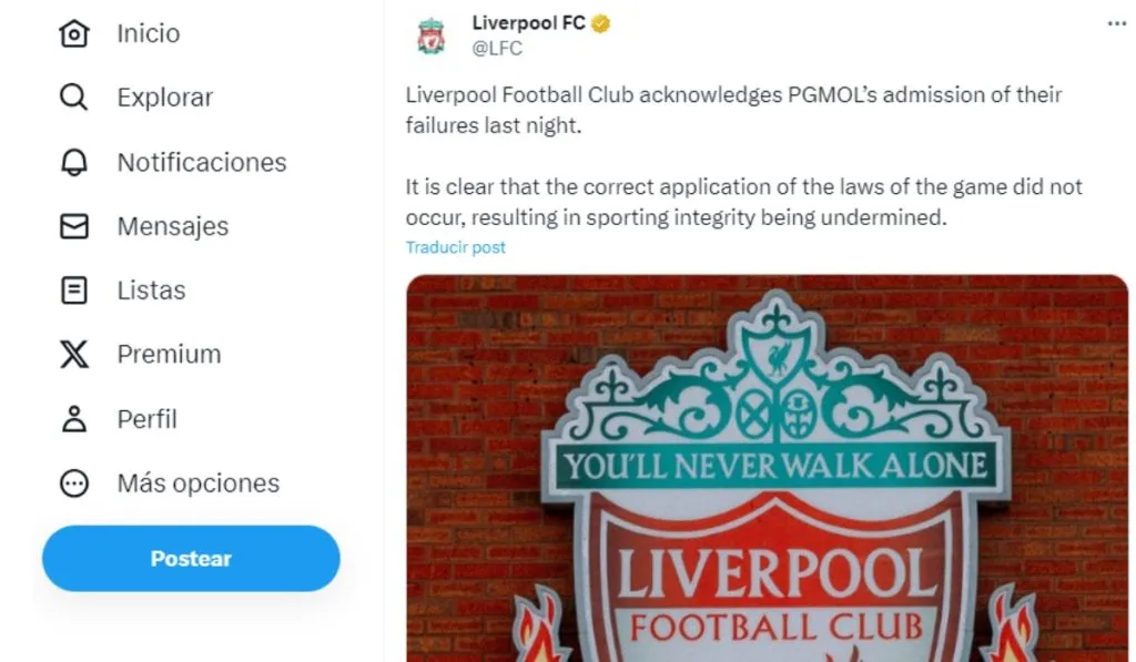 El comunicado del Liverpool