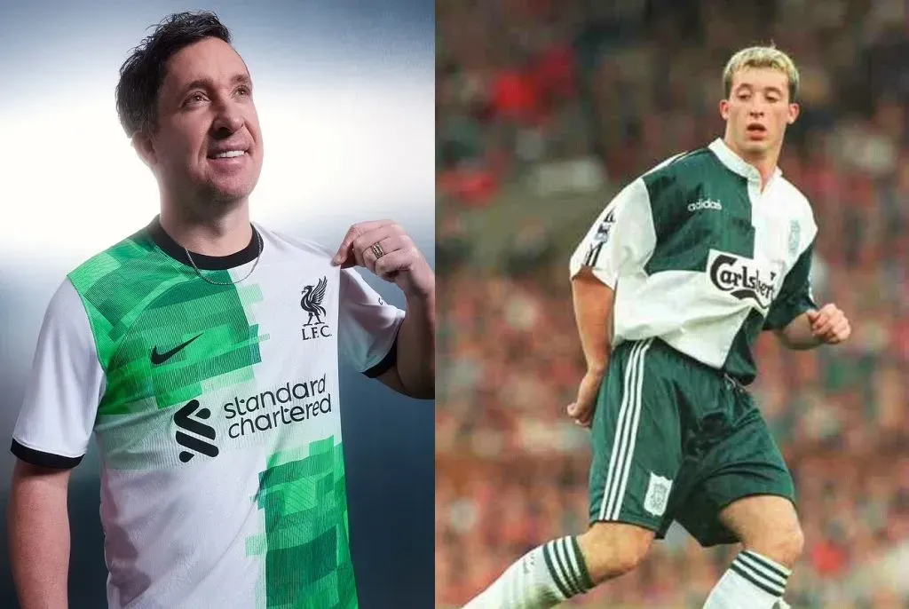 Aunque claro, esta nueva piel tiene un giro moderno a la utilizada durante la campaña 1995/96, donde se pueden apreciar patrones blancos y verdes con bordes negros. La propia leyenda del club, Robbie Fowler, posó con la nueva camiseta y es la opción ideal para comparar las dos versiones: