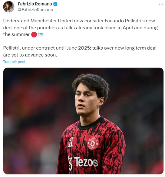 “Manchester United ahora considera el nuevo acuerdo de Facundo Pellistri una de las prioridades, luego de las conversaciones que tuvieron lugar en abril y durante el verano. Las negociaciones sobre un nuevo acuerdo a largo plazo avanzarán pronto“, explicó el periodista italiano.