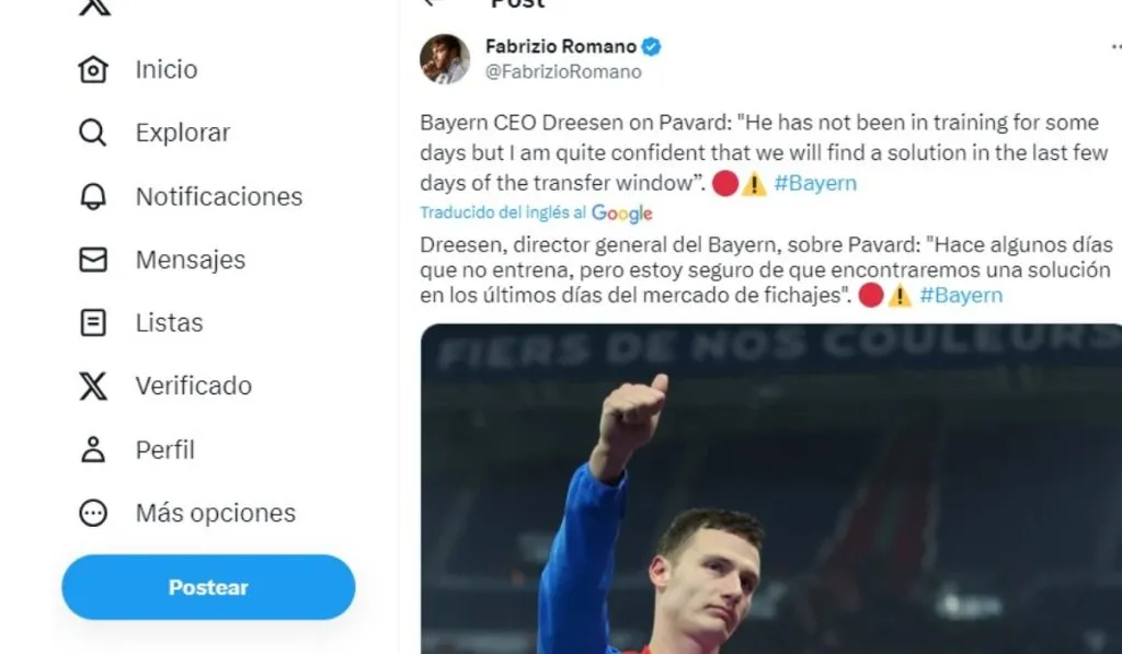 “Hace algunos días que no entrena, pero estoy seguro de que encontraremos una solución en los últimos días del mercado de fichajes”, palabras de Jan-Christian Dreesen como CEO del Bayern Múnich alrededor de un Pavard que puede unirse a este inesperado cambio de fichas entre Old Trafford y el Allianz Arena.