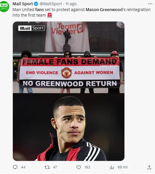 El diario The Sun hizo eco de la aparición de un grupo que se hace llamar Female Fans Against Mason Greenwood’s Return. Este grupo de fanáticas exige al entrenador, Erik Ten Hag la exclusión del futbolista británico.