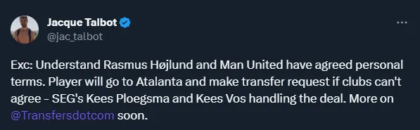 Rasmus Hojlund y Sofyan Amrabat apuntan a ser los próximos fichajes que buscará Manchester United en este verano, según informó el periodista Jacque Talbot. Por el delantero danés, incluso, habría un acuerdo en cuanto a los términos personales, es decir, su futuro contrato con el club de los Red Devils. Sólo restaría acordar con Atalanta los detalles y la cifra para su transferencia.