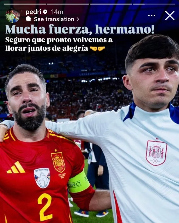 Frente a este escenario, el lateral derecho de la Casa Blanca, además de recibir el cariño de sus compañeros y de los aficionados del Madrid, también contó con el afecto de sus colegas del combinado nacional. Tal fue el caso de Pedri, mediocampista del FC Barcelona, que le envió sus fuerzas mediante su cuenta oficial de Instagram.