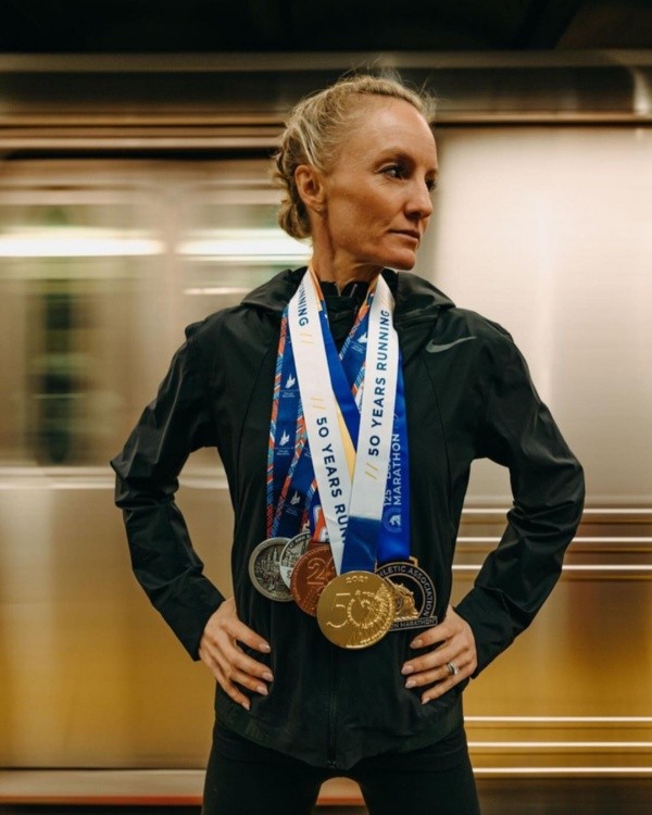 Esa carrera ya la había visto campeona en 2017, siendo la primera americana en ganarla desde 1977. En esta ocasión la corrió apenas 9 minutos más lenta que la vez que pudo consagrarse. Nada mal a los 40 años. De hecho, en esta edición 2021 finalizó en la posición 12, 11 minutos por detrás de la ganadora Peres Jepchirchir, de Kenia.
