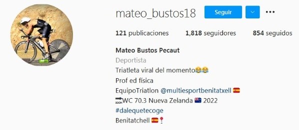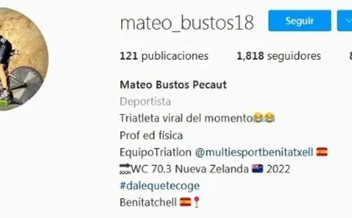 Una vez más, la frase “la carrera no se termina hasta cruzar la meta” suena más fuerte que nunca. Mateo Bustos lo sabe ahora más que nadie. El video de su frustrada llegada en el Triatlón de Sagunto, Valencia, recorrió el mundo. El, con humor, cambió su bio de Instagram: “El triatleta viral del momento”, junto con dos emojis de risas.