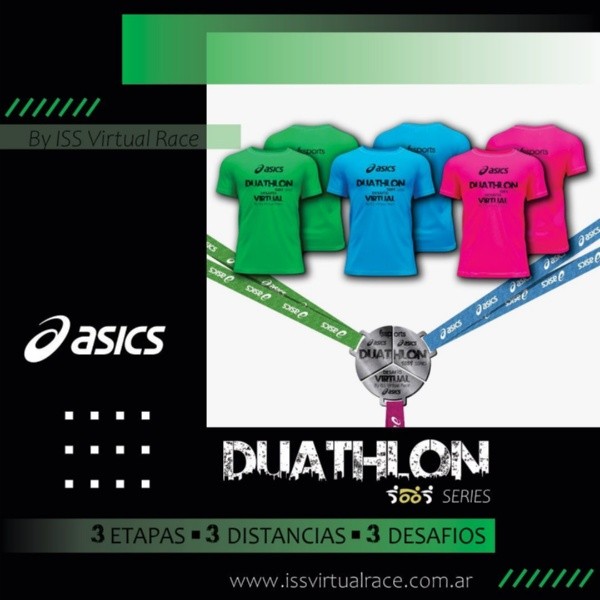 El Duathlon ASICS tendrá el slogan “el desafío está en tu mente”: desde la plataformawww.issvirtualrace.com.arlos participantes podrán anotarse con el objetivo de completar el recorrido de Pedestrismo – Ciclismo – Pedestrismo en la distancia que elijan y cada uno desde su lugar de residencia.