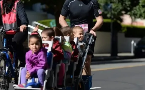 ¿Qué se puede hacer para entretener a cinco niños al mismo tiempo? ¡Correr un medio maratón! Al menos eso es lo que se le ocurrió hacer a Chad Kempel, quien logró un récord único en el Guiness: llevó a sus quintillizos en el cochecito durante los 21 kilómetros de la Maratón de Oakland.