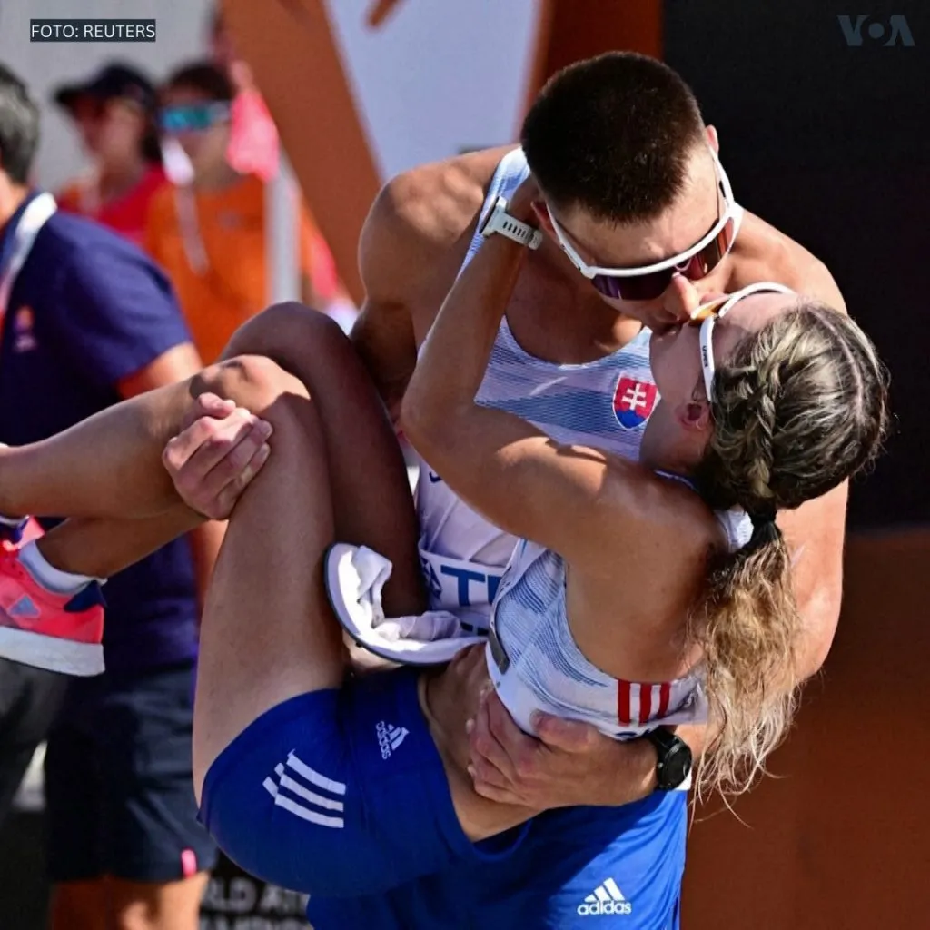 Terminó, la esperó, se arrodilló y la llevó en andas. Y ella, luego de frenar su reloj para dejar registrada la marca que acababa de lograr en el Mundial de Atletismo de Budapest, se sorprendió y dijo que sí. Se trata de los eslovacos Dominik Cerny y Hanka Burzalova, quienes luego de completar los 35 kilómetros de marcha se comprometieron a la vista de todos.