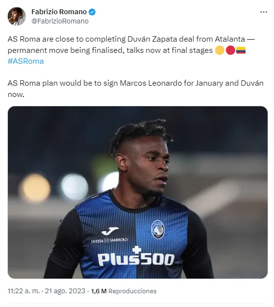 Según informa Fabrizio Romano, las conversaciones entre las partes están en fase avanzada y se espera que todo se resuelva en los próximos días. La fuente asegura que los giallorossi no descartan la opción de Marcos Leonardo, pero este llegaría en el mercado invernal.