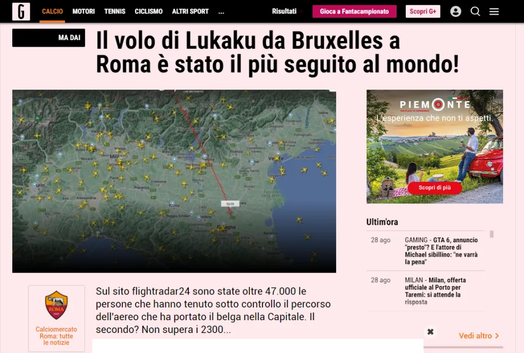 El sitio Flightradar24 registró hasta 47.000 personas siguiendo el vuelo del jugador en tiempo real. Hasta la fecha, el vuelo más seguido en la famosa plataforma era de 2.300 usuarios a tiempo real según informa La Gazzetta dello Sport.