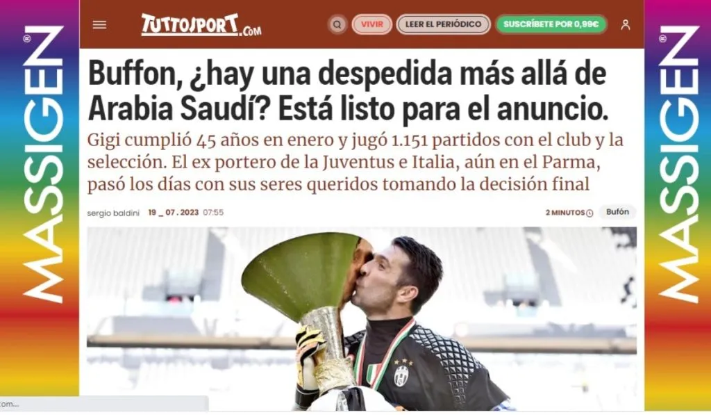 Ambas fuentes aseguran que en caso de poner fin a una carrera de ensueño, Buffon no hará uso de ningún tipo de conferencia de prensa y solo emitirá un comunicado para mostrar su postura. El guardameta ha sido tentado por los millones de Arabia Saudita y tanto Tuttosport como Gianluca Di Marzio marcan que dicho hecho ha sido el único motivo para no haber dicho adiós a 19 de julio.