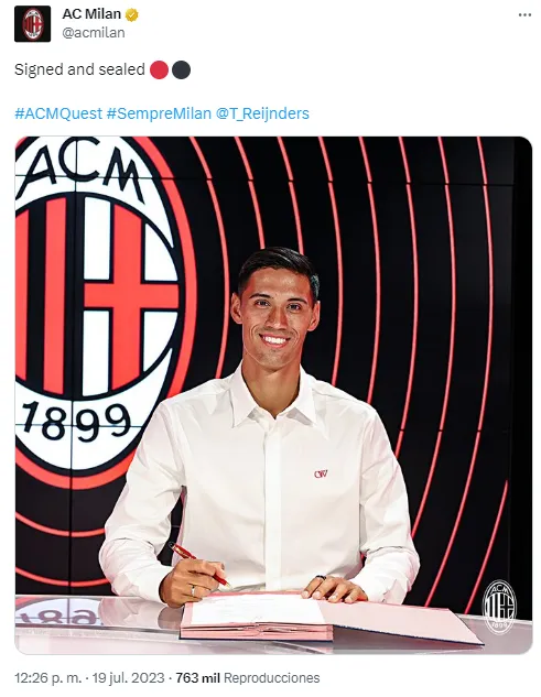 Fue este 19 de julio que AC Milan confirmó el fichaje de Tijjani Reijnders. El volante de AZ Alkmaar ha firmado por el equipo rossonero hasta 2028, luego de que los clubes llegaran a un acuerdo por una cifra cercana a los 19 millones de euros. El mediocampista ya tuvo sus primeros minutos en el amistoso contra Real Madrid.