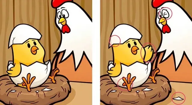 En este nuevo desafío de Bolavip, te invitamos a encontrar las DIFERENCIAS entre las imágenes que te mostramos aquí abajo. Una gallina observa a su pollito salir de uno de sus huevos. Tendrás 30 segundos para lograrlo. ¡Adelante!