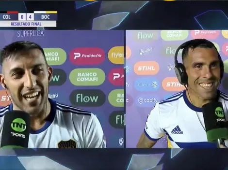 Los dos delanteros de Boca se divirtieron después del partido bromeando sobre la dieta de Ábila.
