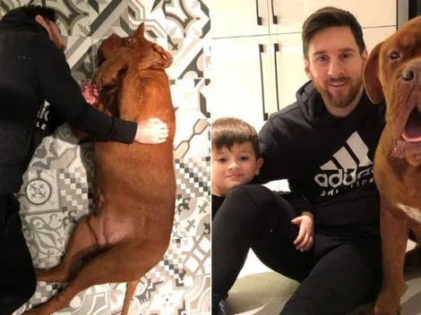 Antonella Roccuzzo, la hermosa esposa de Lionel Messi, subió una foto de su perro enorme tirado lo más cómodo en una especie de sillón inflable.