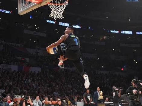 Dennis Smith Jr. de los Mavericks de Dallas y concursante en el torneo de clavadas del All Star Break, posó con una playera de los Diablos Rojos.