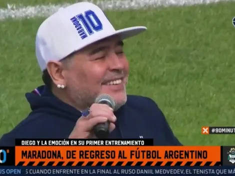 No importó que el micrófono no estuviera a la altura de su leyenda: Diego Maradona hizo su primera promesa a Gimnasia de La Plata y los hinchas explotaron.