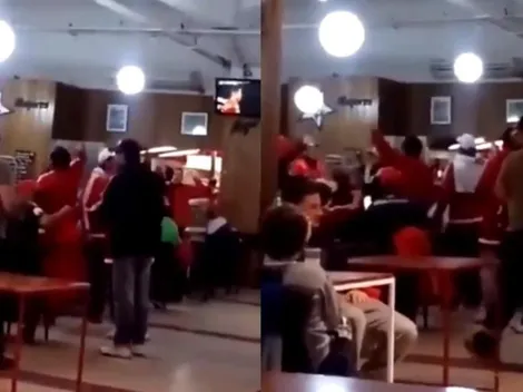 En la confitería del club, durante el partido entre el Millonario y Argentinos Juniors, 'Los Borrachos del Tablón' fueron reconocidos y filmados cantando contra la prohibición que tienen de ingresar al estadio durante los partidos.