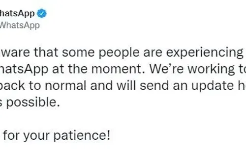 A través de Twitter, WhatsApp emitió el siguiente comunicado oficial: “Somos conscientes de que algunas personas están experimentando problemas con WhatsApp en este momento. Estamos trabajando para que todo vuelva a la normalidad y enviaremos una actualización aquí lo antes posible. ¡Gracias por su paciencia!”.