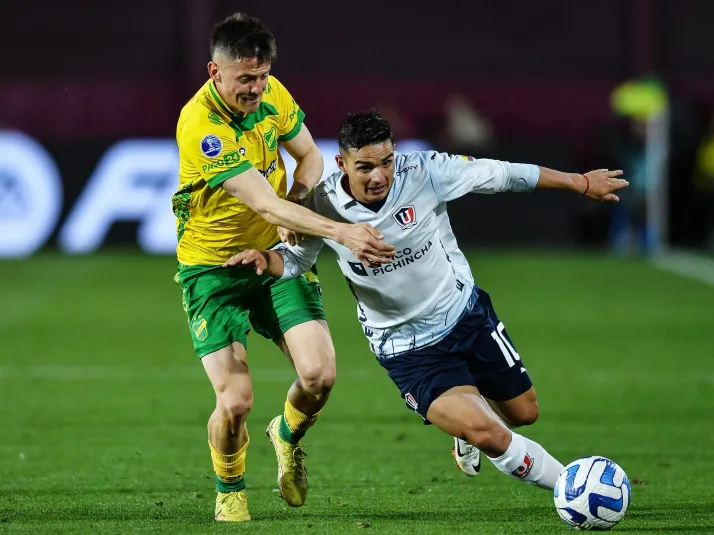 ¿Era penal? Liga de Quito reclamó como falta esta acción sobre Alvarado