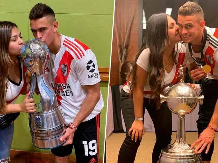 Santos Borré y su novia, a los besos delante de la Copa Libertadores