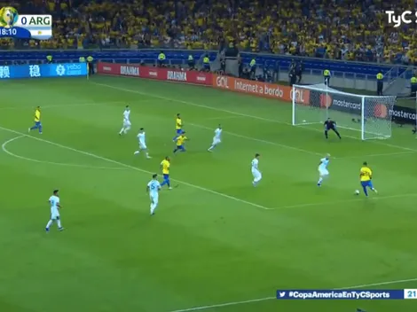 El lateral la empezó con una maniobra grandiosa y el delantero la finalizó para el 1-0 de Brasil a Argentina.