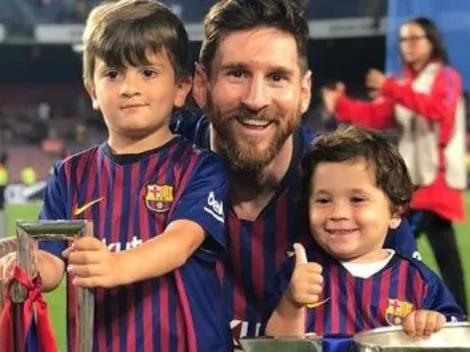 LionelMessi compartió una historia en Instagram en la que se ve a sus hijos Thiago y Mateo cenando con la camiseta del Barcelona puesta. Y comen sanito, como papá.