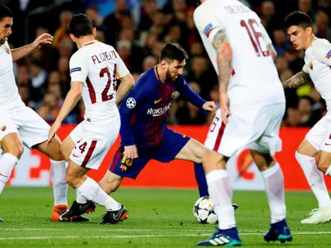 Ante la Roma, por los cuartos de final de la Champions League, nuevamente se repitió una curioso postal: cómo los rivales acorralan a Messi. Ésta vez, en la foto están ¡ocho jugadores de la Roma! Así lo marcan.