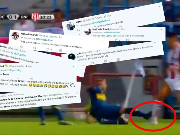 Segundos después de la tremenda lesión que sufrió Ham por Tevez, Fernando Cavenaghi le envió fuerza por las redes sociales. Gordo dolor. Carlos Tevez...