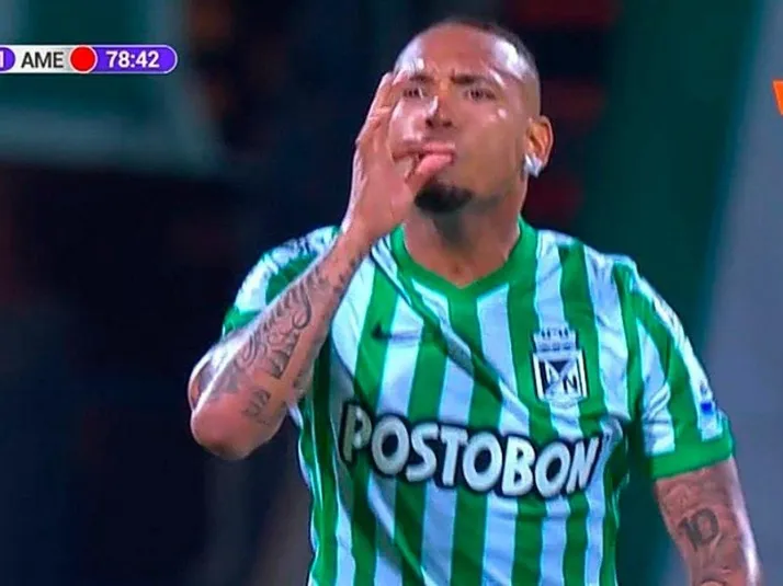La curiosa imagen del volante se dio cuando Atlético Nacional festejaba el tercer gol del encuentro contra Unión Magdalena.