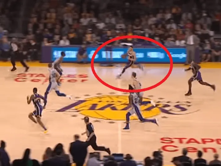 Tapón, robo y pase picado de Lonzo Ball para la asistencia