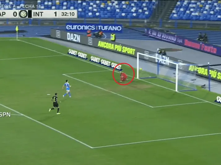 ¿Qué hizo? Al arquero del Napoli se le escapó la pelota entre las manos