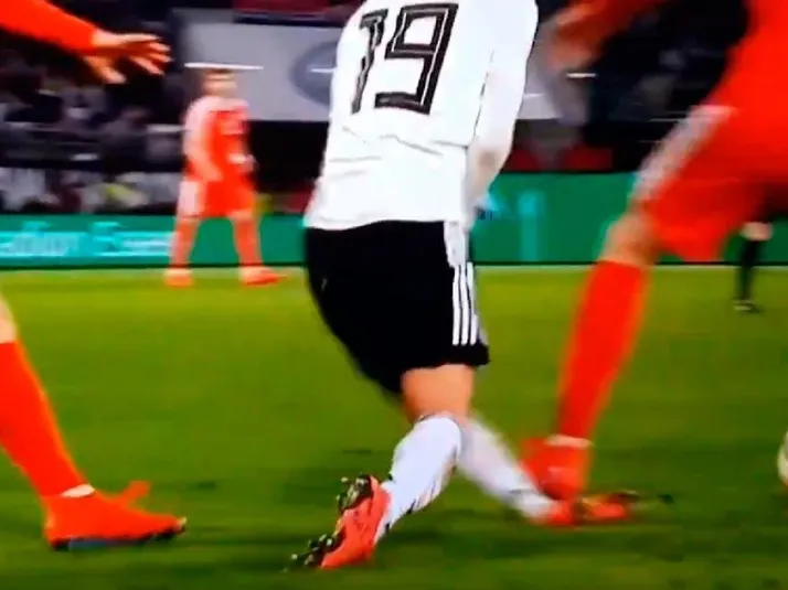 A Sané casi le rompen el tobillo en la última jugada del amistoso ante Serbia