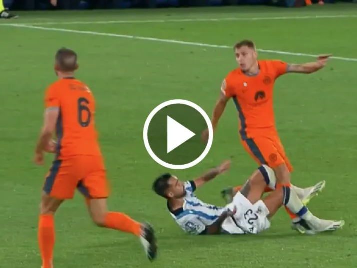 En Grecia-Italia, Barella intentó centrar, el defensor se lo impidió, le pegó un puntinazo al balón para descargarse ¡pero le dio en la cabeza a un...