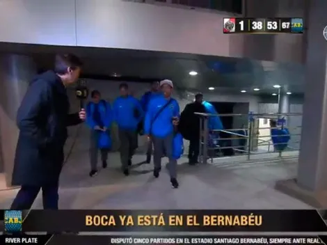 Los jugadores de Boca salieron al campo de juego del Bernabéu y los hinchas del Xeneize explotaron en aliento.