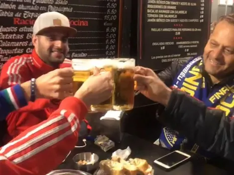En Madrid,Bolavipse cruzó con dos hinchas de Rivery dos de Boca. ¿Estaban peleándose? No, compartían unas cervezas en un bar. ¡Entendieron todo!