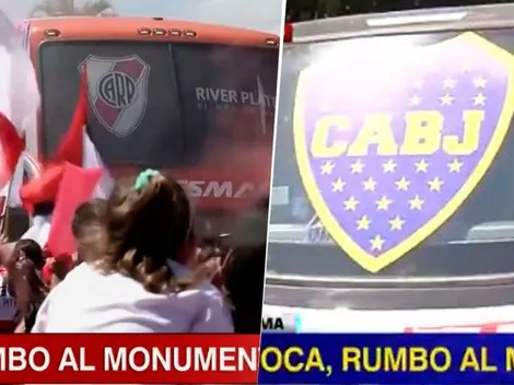 Casi al mismo tiempo, los planteles de Rivery Boca partieron, escoltados por una marea humana, rumbo al estadio Monumental en el que definirán, desde las 17, quién será el nuevo campeón de la Copa Libertadores.