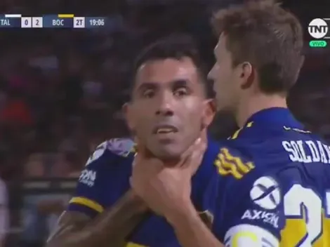 El Apache se agarró el cuello y miró a la cámara para celebrar el 2 a 0 del Xeneize.