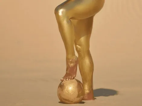 La modelo se disfrazó con pintura dorada para festejar un nuevo logro del jugador del Barcelona.