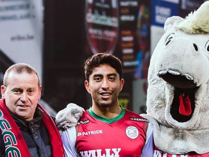 Govea premiado en Bélgica con una extravagante botarga a su lado