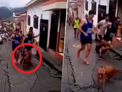 En plena carrera, el conocido corredor Yisus le propinó una terrible patada a un perro que acompañaba a los competidores.